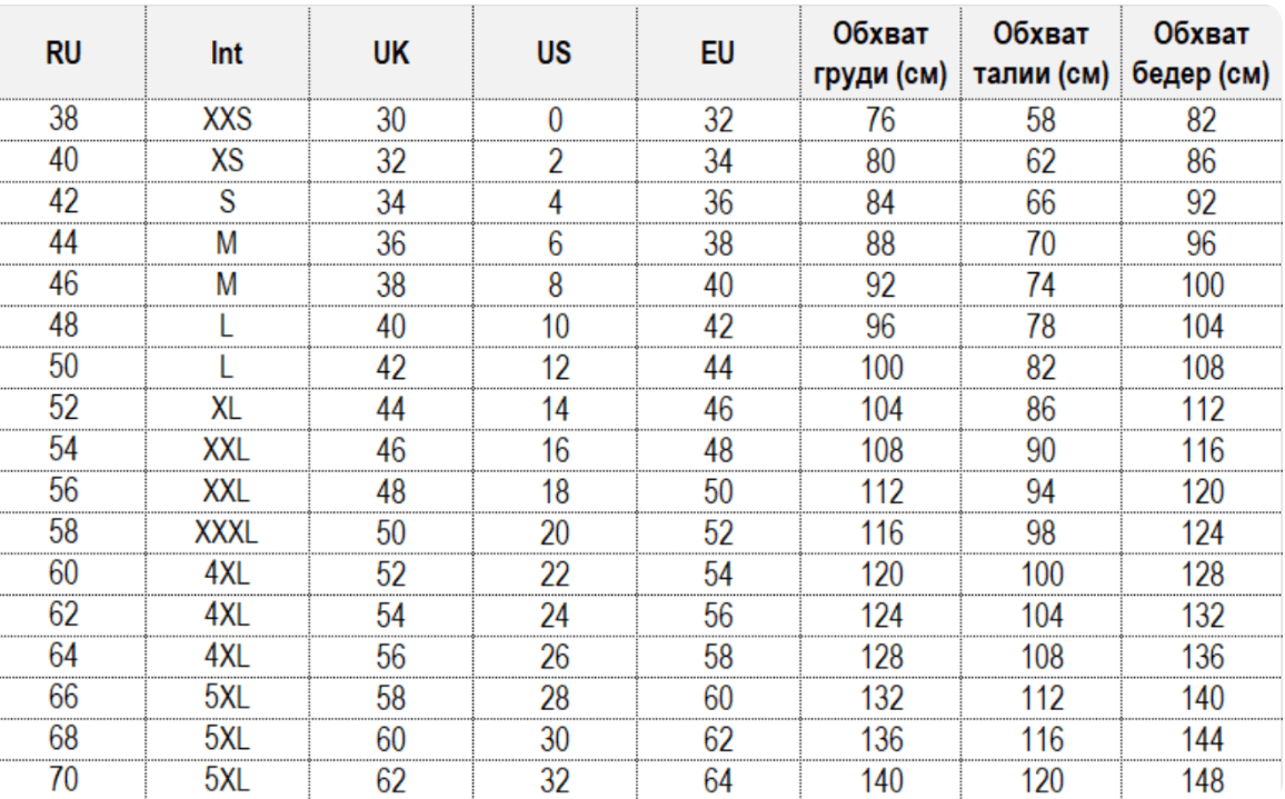 Таблица размеров